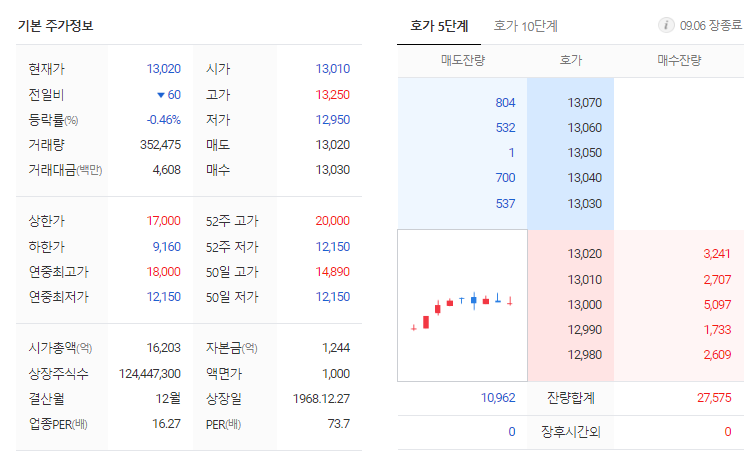대한전선 현재 주가는 13,080원이며 전일 대비 -70원의 모습을 보이고 있습니다. 대한전선의 주주현황을 살펴보면 호반산업(외 3인)이 지분 40.11%를 소유하고 있습니다. 대한전선는 전기장비 기업으로 장중 기준으로 주가는 13,080원 입니다. 삼성전자의 시가 총액은 1조6203억 원이며 발행 주식수는 3.55주 입니다. 외국인 보유 비중은 353,067% 이며 장중 거래량은 124,447,300를 기록했습니다. 매출액은 14,583억 원, 영업이익은 482억 원을 달성했습니다. EPS는 없음원이며 대한전선 주식 배당수익률은 % 입니다.