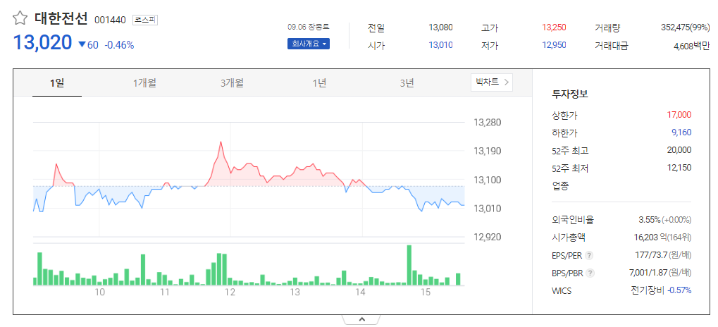 이 글에서는 대한전선 주가 전망과 목표 주가, 기업 정보에 대해서 설명합니다. 주식 거래에서 중요한 점은 미래 기업 가치를 예상하며 선제적으로 움직이는 것입니다. 투자할 종목을 고르기 전에 현재 기업 상황과 지표를 살펴야 합니다. 대한전선 주식의 주요 현황과 투자 정보를 확인하시고 주식 투자에 도움이 될 만한 정보들을 모아 놓았으니 투자를 고려하실 때 참고하세요..