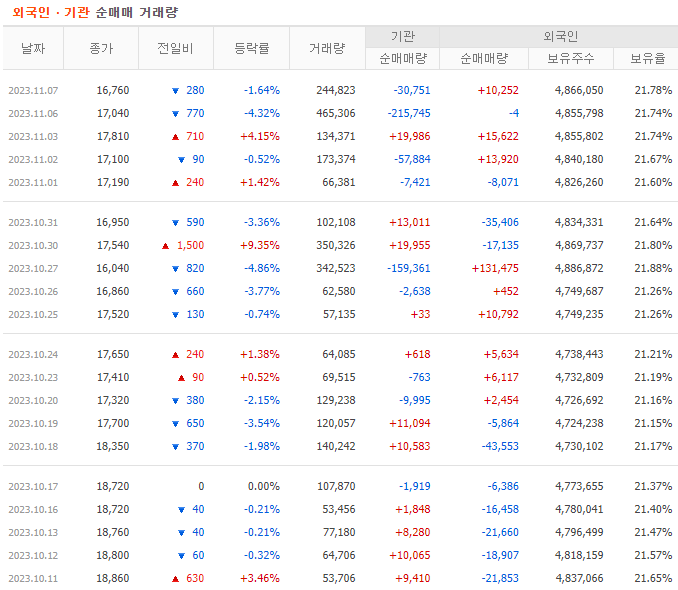 그래서 개인 투자자는 기관이나 외국인 세력을 따라 움직이며, 세력이 약해도 어떤 걸 사고 팔아 이익을 창출합니다. 최근의 추세는 외국인 매수보다 기관 투자자를 따르는 것이 많고, 이는 외국인 매수의 신뢰 부족과 개인의 단기 거래가 기관과 유사하기 때문입니다.