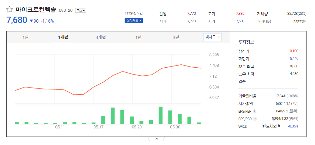 이 글에서는 마이크로컨텍솔 주가 전망과 목표 주가, 기업 정보에 대해서 설명합니다. 주식에 투자하기 전에는 기업 정보를 확인하고 주가 정보에 대해 살펴보는 것이 필요합니다. 마이크로컨텍솔 주식의 주요 현황과 투자 정보를 확인하시고 지금 시장 흐름을 살펴보겠습니다.