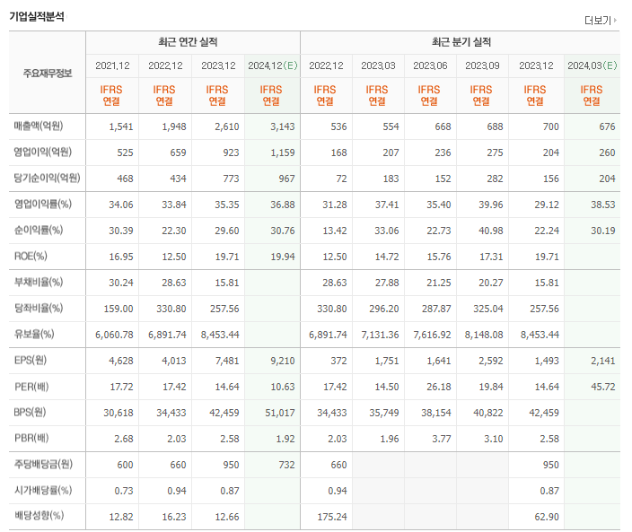 -2023년 9월 전년동기 대비 연결기준 매출액은 35.4% 증가, 영업이익은 46.3% 증가, 당기순이익은 66.1% 증가. 매출은 현재 의약품 21.3%, 의료기기 52.0%, 화장품 23.4%, 기타 3.3%로 구성되어있으며 다양한 판매 경로를 통해 지속적으로 큰 성장을 보여주고 있음. R&D를 통한 제품개발 및 시장 확대에 힘쓰고 중국 및 일본 중심의 아시아 시장과 북미 시장을 통한 해외사업을 진행하고 있음.