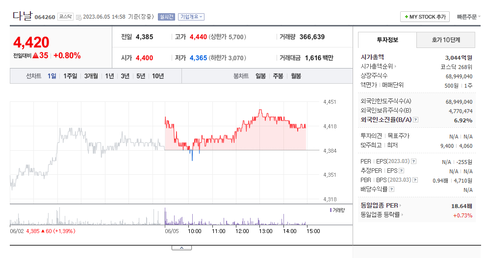 이 글에서는 다날 주가 전망과 목표 주가, 기업 정보에 대해서 설명합니다. 주식을 알아보기 전에 기업의 주가와 재무 정보에 대해서 알아보는 것은 아주 중요합니다. 다날 주식의 주요 현황과 투자 정보를 확인하시고 지금 시장 흐름을 살펴보겠습니다.