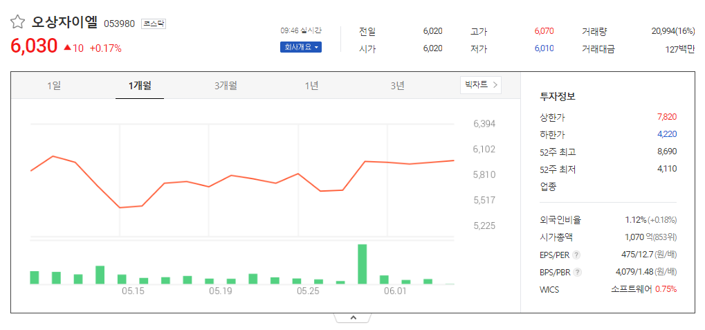 오상자이엘 주가 전망 현황과 주식에서 기업 순위