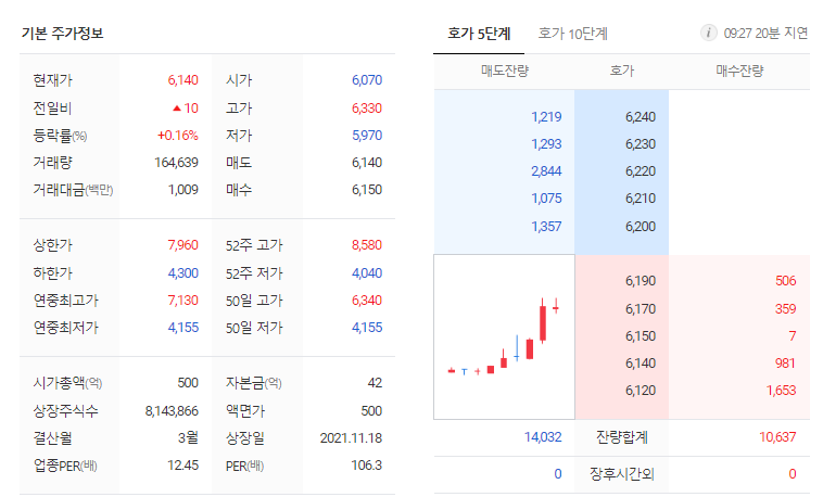 바이옵트로 현재 주가는 6,130원이며 전일 대비 -29.30원의 모습을 보이고 있습니다. 바이옵트로의 주주현황을 살펴보면 김완수(외 5인)이 지분 38.40%를 소유하고 있습니다. 바이옵트로는 반도체 및 관련장비 기업으로 장중 기준으로 주가는 6,130원 입니다. 삼성전자의 시가 총액은 499억 원이며 발행 주식수는 1.32주 입니다. 외국인 보유 비중은 1,775,570% 이며 장중 거래량은 8,143,866를 기록했습니다. 매출액은 107억 원, 영업이익은 48억 원을 달성했습니다. EPS는 없음원이며 바이옵트로 주식 배당수익률은 30% 입니다.