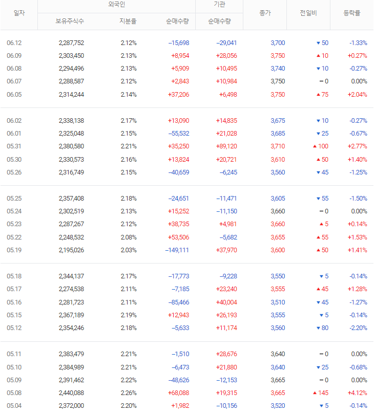 만약 짧은 기간 거래한다면 주주현황 정보는 필요 없겠지만 긴 관점에서 기업가치를 알아보고 분석할 때는 앞으로의 비전과 능력을 보는 것도 필요합니다. 대주주들을 직접 만날 수는 없지만 어떤 형태로 구성되어 있는지는 살펴보는 것이 좋습니다.