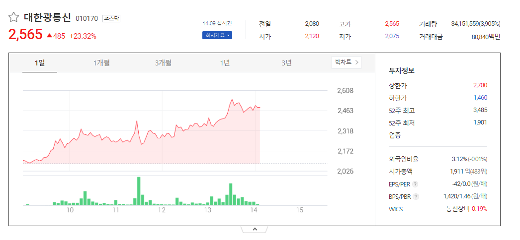 대한광통신 주가 분석