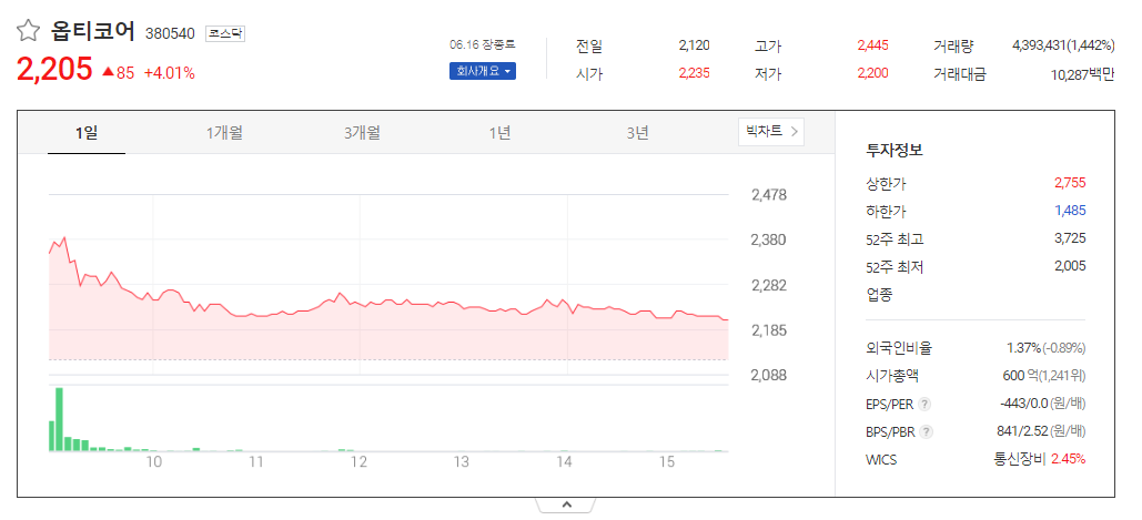 이 글에서는 옵티코어 주가 전망과 목표 주가, 기업 정보에 대해서 설명합니다. 주식에 투자하기 전에는 기업 현황고 현재 시장 흐름에 대해서 분석하는 것이 필요합니다. 옵티코어 주식의 주요 현황과 투자 정보를 확인하시고 주가 흐름을 정리해보겠습니다.