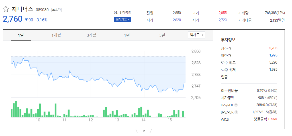 지니너스 주가 전망 분석과 기업 자료