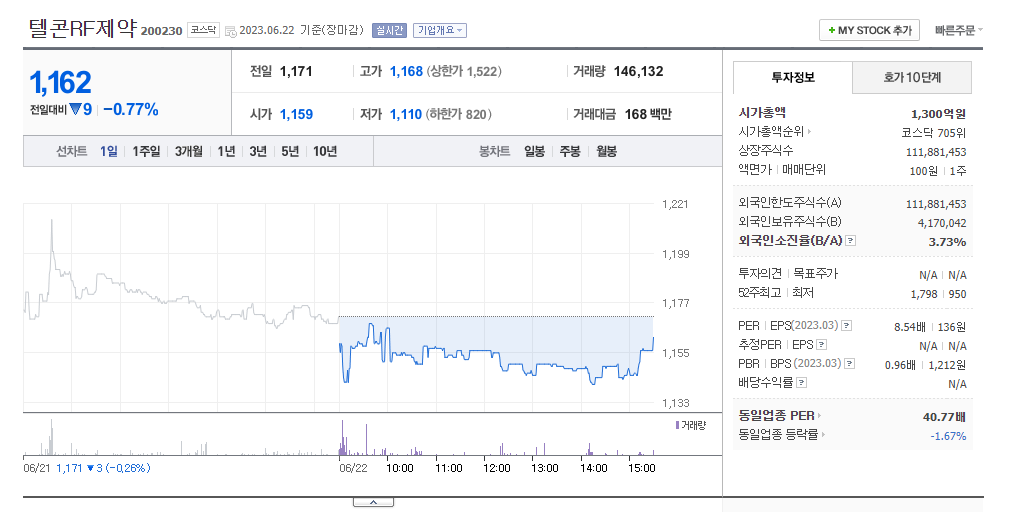 텔콘RF제약 주가 전망 상태 시장 흐름 분석
