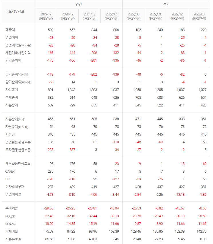 -2023년 3월 전년동기 대비 연결기준 매출액은 12.1% 증가, 영업이익 적자전환, 당기순손실은 90.7% 감소. 일부 비용은 여전히 증가추세에 있으나 시장의 점진적 회복으로 매출이 증가하였고 인건비 및 복리후생비를 절감하면서 수익성을 회복하고 있음. 주력 제품군과 함께 신원료 기반 사업으로 브랜드 경쟁력과 차별성을 강화해 온오프라인 건강식품 사업을 확대하고 시장 지위를 공고히 하고 있음.