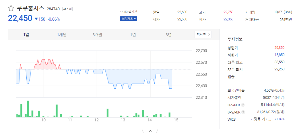 이 글에서는 쿠쿠홈시스 주가 전망과 목표 주가, 기업 정보에 대해서 설명합니다. 주식을 제대로 하기에 앞서 기업의 주가와 재무 정보에 대해서 알아보는 것이 필요합니다. 쿠쿠홈시스 주식의 주요 현황과 투자 정보를 확인하시고 현재 시장에서의 흐름을 파악해 보겠습니다.