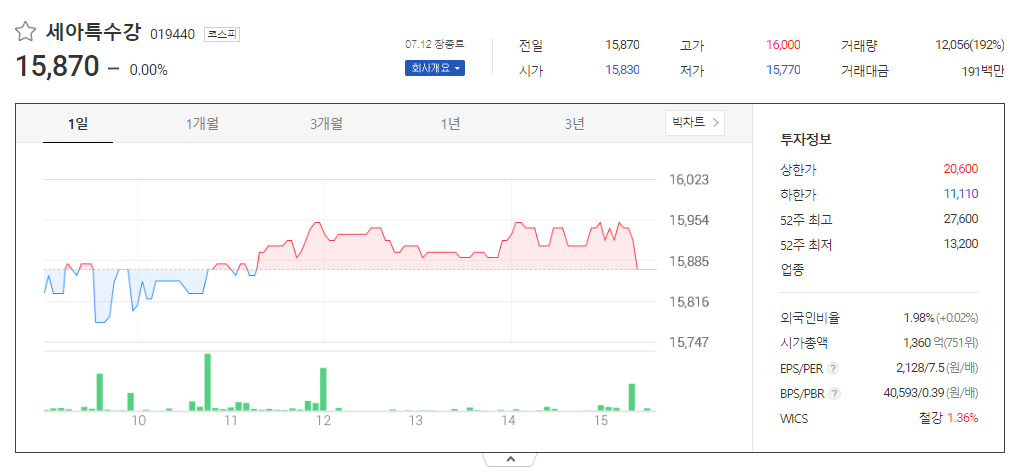이 글에서는 세아특수강 주가 전망과 목표 주가, 기업 정보에 대해서 설명합니다. 주식 투자에 앞서 기업 주가와 재무 현황표에 대해서 살펴보는 것이 필요합니다. 세아특수강 주식의 주요 현황과 투자 정보를 확인하시고 현재 시장 현황을 살펴보겠습니다.