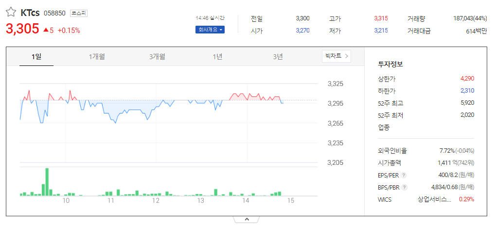 KTcs 주가 전망 목표 주가 기업 분석 정보