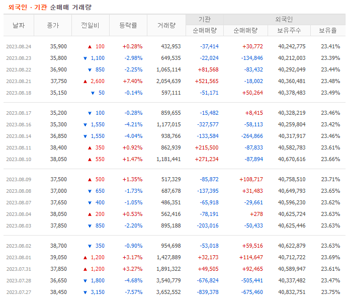 따라서 개인 투자자는 기관이나 외국인 세력을 따라야 하며, 세력이 약해도 투자를 통해 수익을 얻을 수 있습니다. 기관 투자자를 따르는 추세가 최근에 더욱 두드러지며, 이는 외국인의 매수가 불안정하고 개인의 단기 거래가 기관과 비슷한 양상을 보이기 때문입니다.