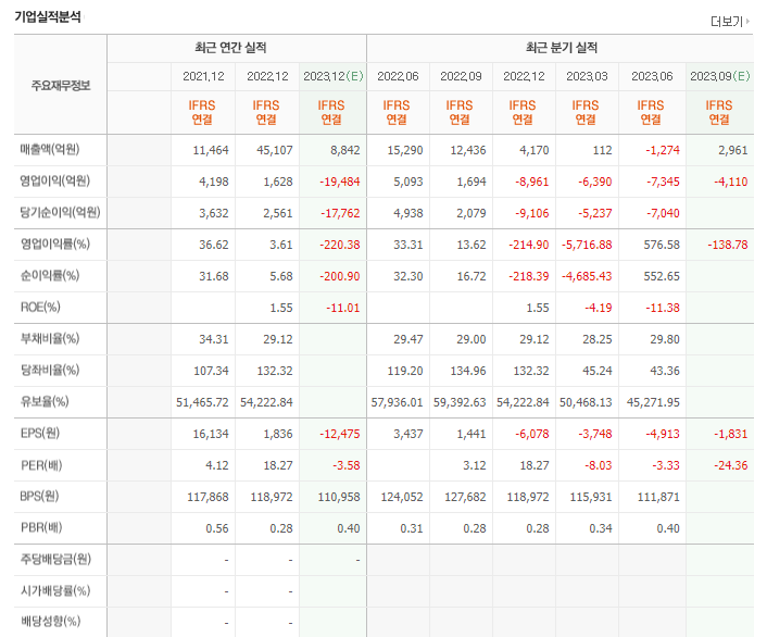 -2023년 3월 전년동기 대비 연결기준 매출액은 98.8% 감소, 영업이익 적자전환, 당기순이익 적자전환. 당분기 중, 동사는 SK쉴더스(주)의 지분에 대한 주식매매계약으로 인하여 기존 보안사업을 중단영업으로 분리하여 표시하였음. 2022년 연말 기준 순현금 1,869억원의 배당수익을 기록했고, 반도체 및 ICT 산업분야 내 높은 잠재력을 보유한 기업을 발굴하여 투자를 진행할 예정.